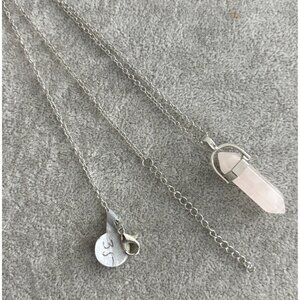 Rose Quartz Crystal Pendant Necklace With Silver Chain