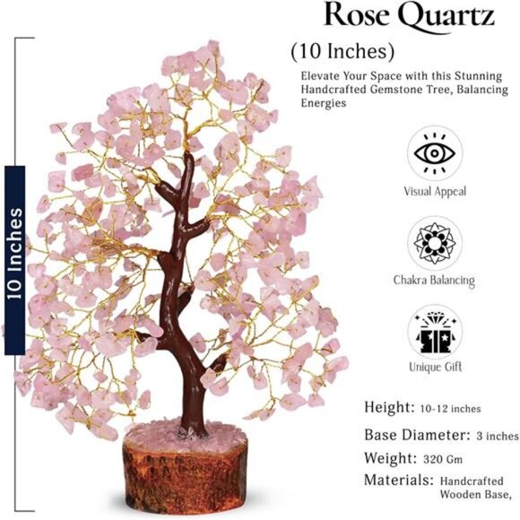 🧿PREMIUM ROSE QUARTS CRYSTALS - The rose quartz crystals and healing stones used for crafting this beautiful bonsai tree are all real and natural from India. We only use premium rose quartz crystals, sourced from the shores of Gujrat India.