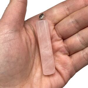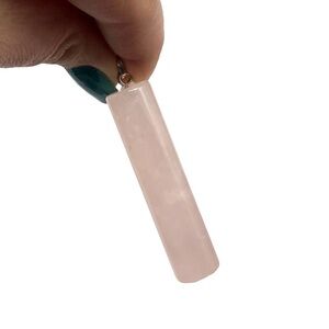 Rose Quartz Cylinder Necklace Pendant Long Natural Stone Crystal Light Pink