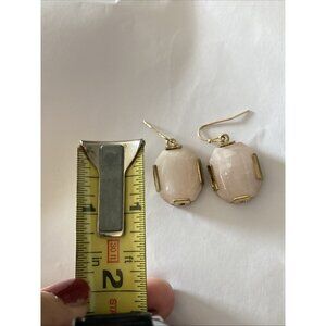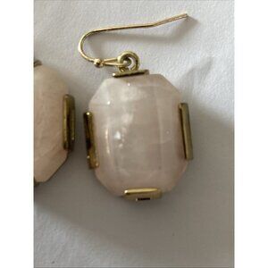 Rose Quartz Earrings Dangle Gold Tone Pierced Chunky Statement Jewelry