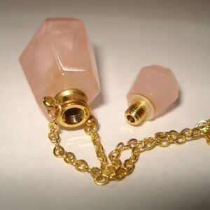 Rose Quartz Gem Stone Perfume/Oil Bottle Pendant Necklace Signed