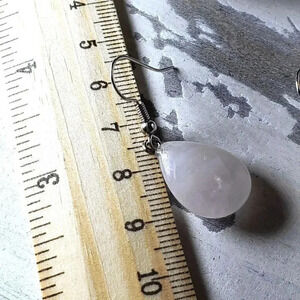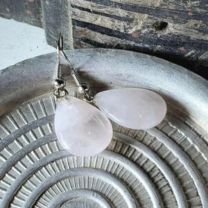 Rose Quartz Gemstone Puffed Teardrop Handcrafted Pink Silver Dangle Earrings