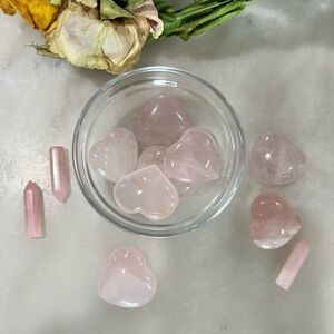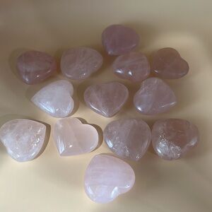 These Rose Quartz Palm Stones are hand carved into hearts. Colors are varied from light pink to darker pink.
