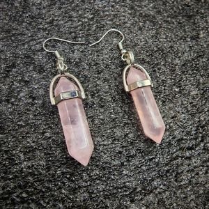 Rose Quartz Metal Earrings Bohemian Style Boho Chakra Pink Crystal Stone Dangle