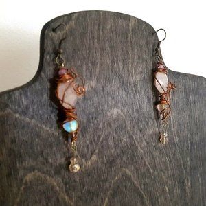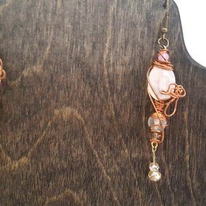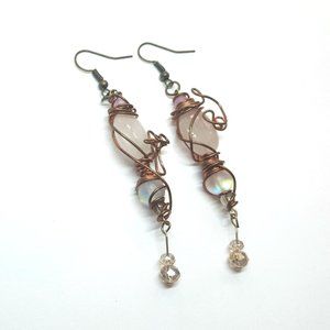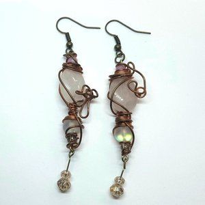 Rose Quartz Mystic Aura Quartz Crystal Earrings