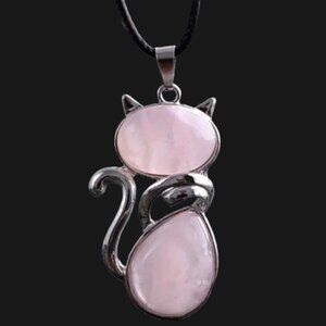Natural Stone Cute Cat Pendant Necklace Rose Quartz. Color / Texture / Shades may slightly vary as Each pendant is one of a kind due to the natural variations in the stones, making them a special and personalized accessory.