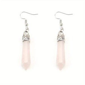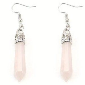 Rose Quartz Natural Stone Gemstone Hexagon Point Healing Stone Dangle Earrings
