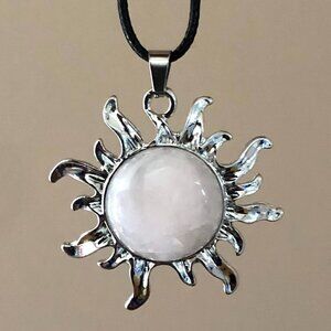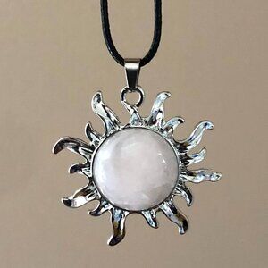 Rose Quartz Natural Stone Sun Shaped Pendant Necklace Healing Gemstone Pendant