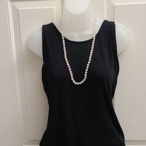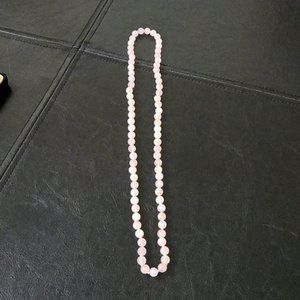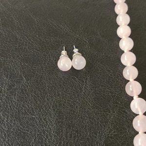 Rose quartz bead necklace and matching post earrings. Necklace measures approximately 13" long. My mom bought them about 35 years ago when she traveled to South America.