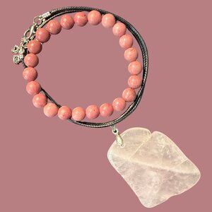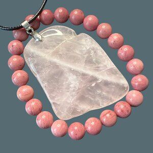 Rose Quartz Pendant Necklace pink rhodonite bracelet fashion accessories bundle