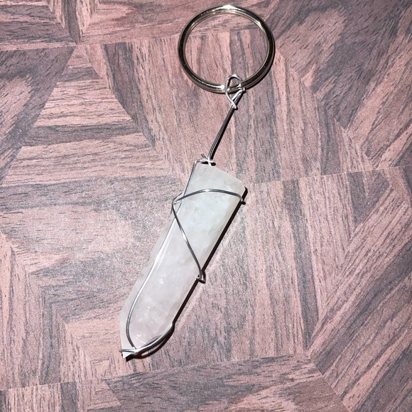 This is a gorgeous rose quartz tower that I have wire-wrapped with silver wire! It is fastened to a keychain that you can place any of your items on as well!