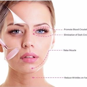 Brand new, original packaging, Rose Quartz Roller Set includes Rose Quartz Gua Sha Scraping Massage Tool. Comes in neutral gift box.