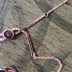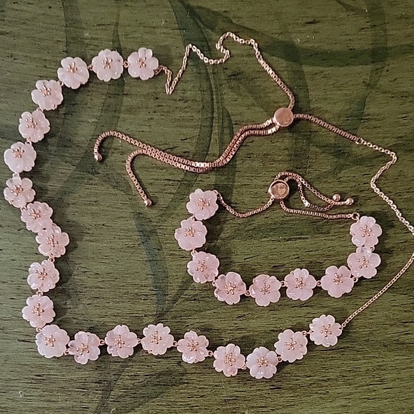 Set with 14k rose gold overlay, 925 sterling silver. Necklace is over the head adjustable slide 18" to 28". Bracelet is adjustable slide 5" to 9" New never worn. Rare and unique piece.