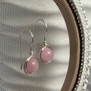 Rose Quartz Wire Wrapped Minimalist Earrings in Pink & Silver