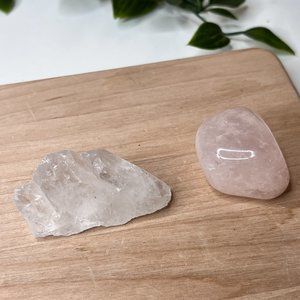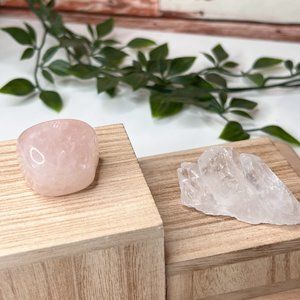 Rose Quartz and Clear Quartz Crystal Bundle - Calming Pocket Crystal Gift Set
