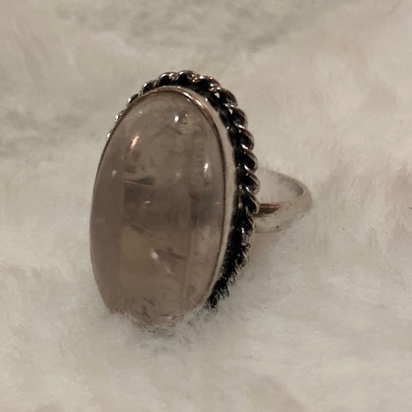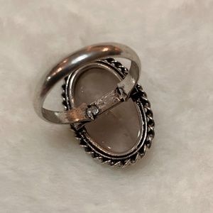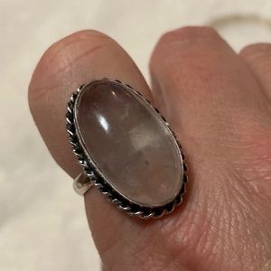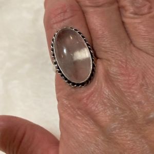 Nice pink colored cabochon stone with a twisted bezel setting.