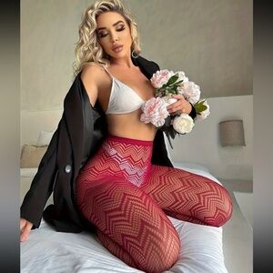 Rose Red Chevron Fishnet Tights