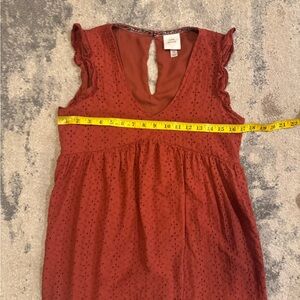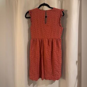 Chic red sleeveless dress with eyelet detailing. Perfect for casual outings.