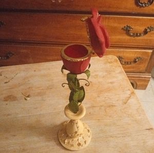 It's a long stemmed rise in a stylish bud vase. its for a romantic occasion, rose hings Open to reveal a hidden ring compartment sure to surprise snd delight any recipient.