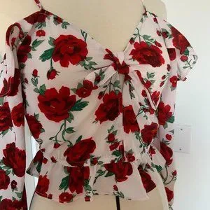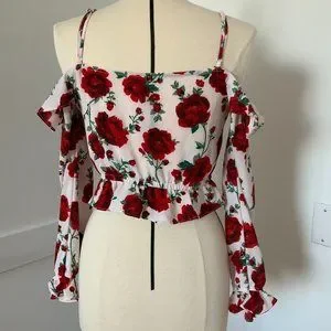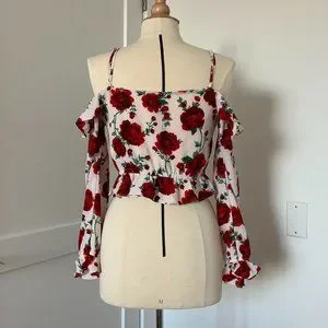 Rose off the shoulder long sleeve top with ruffles perfect for Valentines Day!