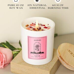 Rose Scented Candles for Women - Aromatherapy Candle with Crystals Inside, 10oz