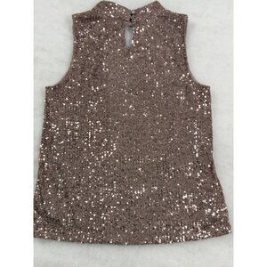 Rose Sequin Keyhole Tank Blouse Sleeveless Glam Barbie Holiday Metallic Romantic