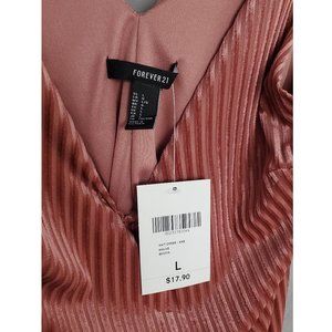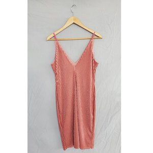 Rose colored velvet striped bodycon midi dress from Forever 21, size Large. New with tags. Stretchy material, inner liner.