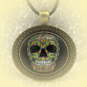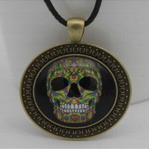 Rose Sugar Skull Cabochon Unisex Pendant Necklace