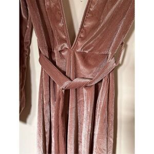 Rose Velour Belted Pants Jumpsuit Deep V-Neck and Sexy Back-out Size Small