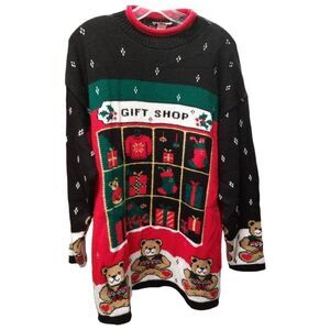 Rose Vintage Gift Shop Pattern Christmas Pullover Sweater Size 3X