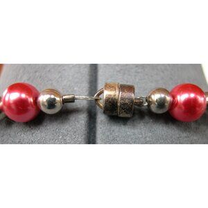 This item is a vintage pink and white beaded necklace, often described as a retro or costume jewelry piece. The large white beads appear to be made from shell, faux pearl, or Lucite/plastic, while the red beads are likely red coral, red glass, or plastic.