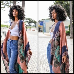 Rose Woven Colorblock Ruana