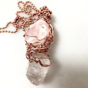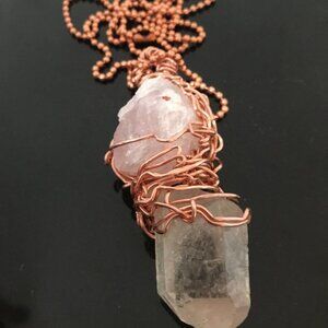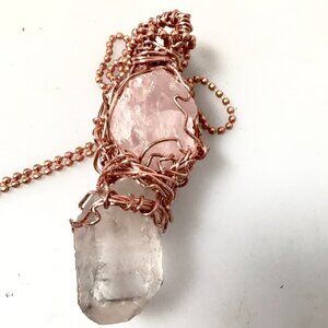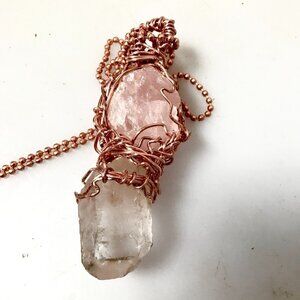 Rose and Clear Quartz Handmade Copper pendant Gemstone Unisex Shamanic Healing