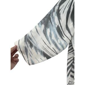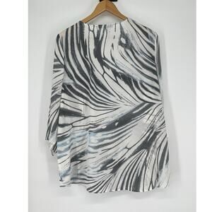 Rose and Olive White Gray Blue Abstract Top Size 1X Flowy Coastal Cool