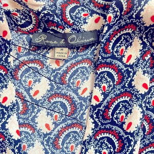 Rose and Olive size medium pretty patterned sleeveless tank blouse in excellent like-new condition red white and blue