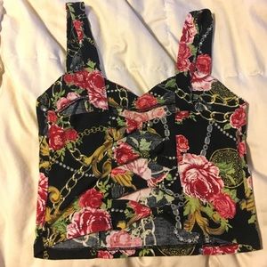 Rose and gold chain print tank top crop top