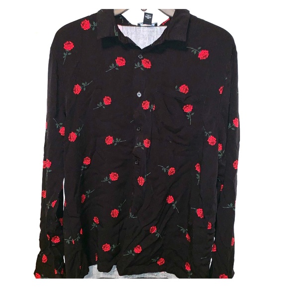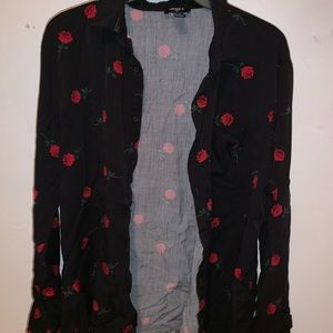 Black button down shirt with rose print. Worn maybe 3 times. Perfect condition