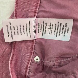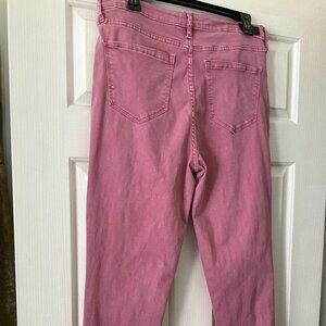 Slightly distressed Nicole Miller jeans. Great color!! Wear with anything!! Rose color is neutral with white, beige pink, red, grey, many other colors.