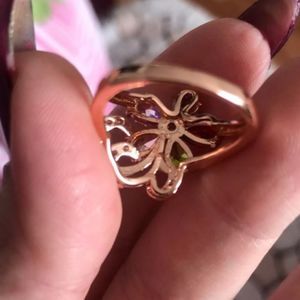 Rose gold 585 filled amethyst Peridot ruby and sapphire zirconia flower boho rin
