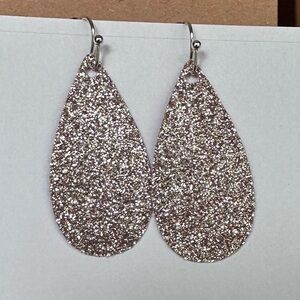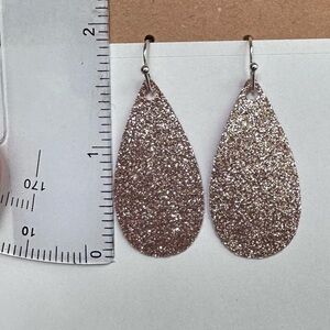 Rose gold color teardrop earrings sparkly handmade vinyl
