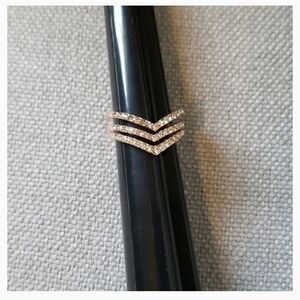 New. Rose gold plated with clear stones this is a great statement ring size 7 not adjustable will come in original package but wrapped for safe delivery in a shipping box