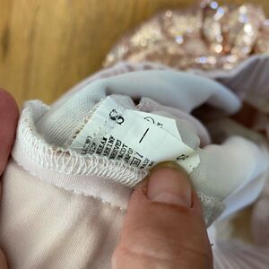 Rose gold, micro sequin, joggers, contrasting cuff, size small. Side pockets elastic waist