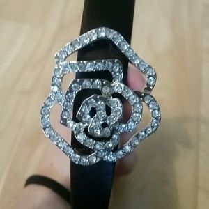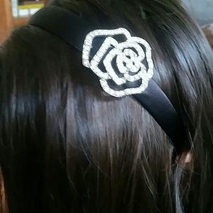 Forever 21 rose headband. The rose is a pretty silver and rhinestone. The band is black satin. It is one size fits all. Worn once and in perfect condition. Perfect for prom, graduation, a wedding or other formal occasion! Easy to match with any party dress.
