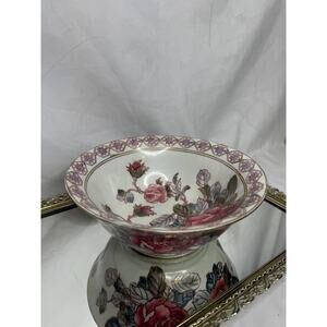 Rose of The Isles, Hand painted Porcelain Fruit Bowl. By Toyo..Pink/ Cream glaze