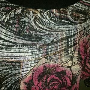 Rose print dolman sleeve top with metallic accents