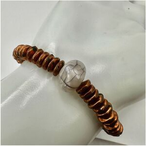 Rose quartz agate and copper disc beaded stretchy bracelet