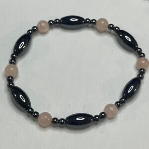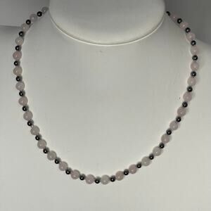 Rose quartz and maybe hematite necklace and stretch bracelet set petite trendy