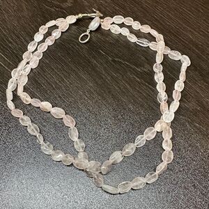 Double stranded, all genuine rose quartz with pearl accent at the toggle clasp. Stamped .925