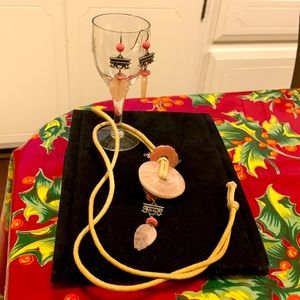 Rose quartz 21 inches long necklace with sterling silver 2 inches long French wire drop matching earring set. Purchased at a fashion boutique. Only worn a few times. No cracks or chips in the stones still in fantastic shape.