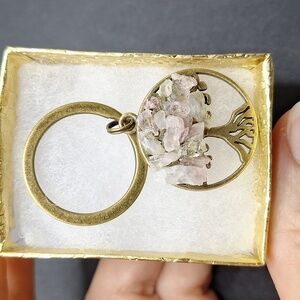Rose quartz tree of life keychain bronze keyring charm accessory